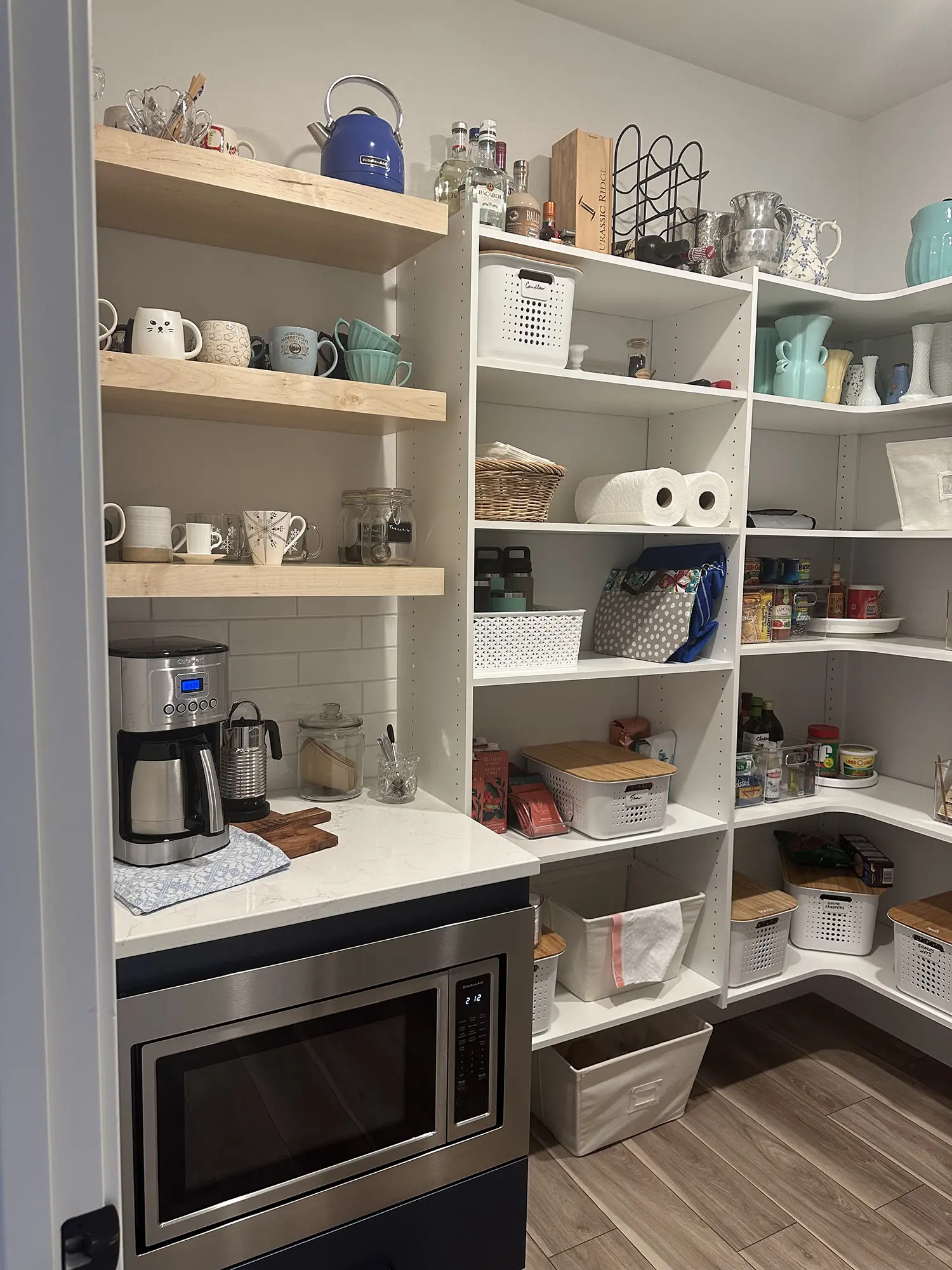 The spectacular kitchen boasts an adjacent walk-in pantry that provides invaluable extra storage as well as a coffee counter conveniently out of site.