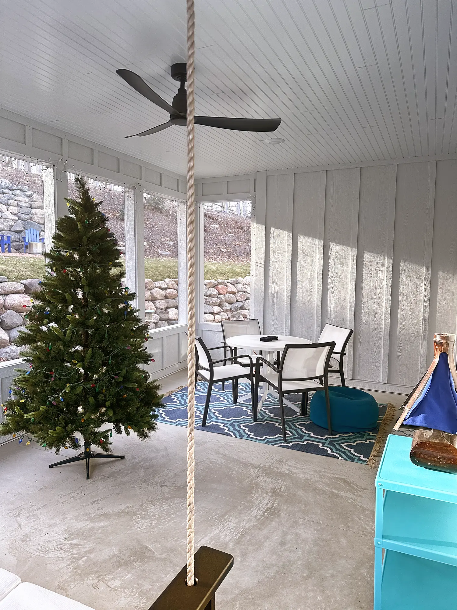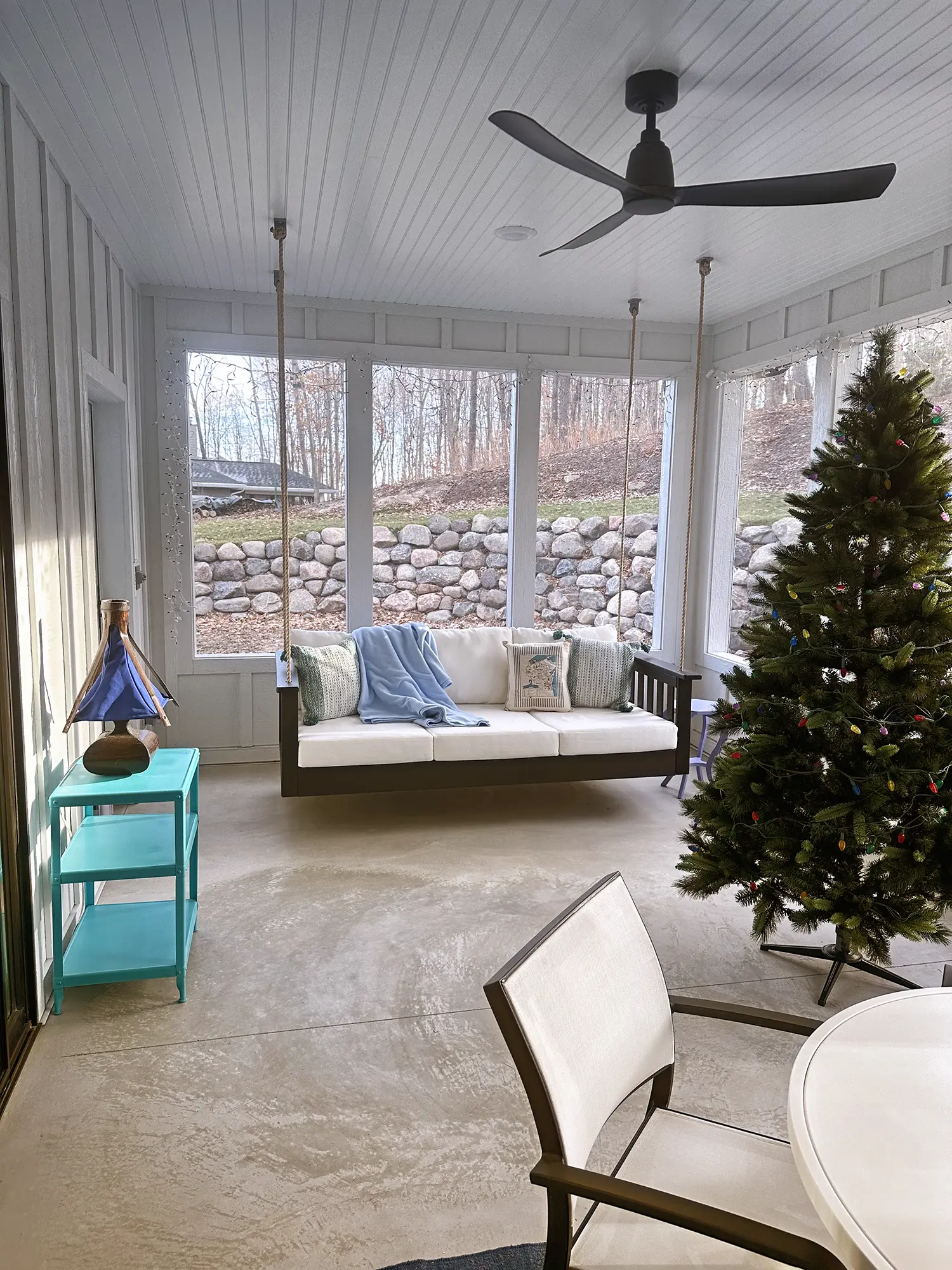 A screened porch off the rear of the home shows off the picturesque outdoors without having to experience some of the unpleasantries that a mid-summer night may bring.